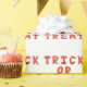 A painting of the words, Trick or Treat that is decorated with candy and various Halloween symbols, by CherylsArt, is printed on wrapping paper.