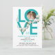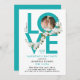 Fun Turquoise Love Celebration Script Photo Floral Invitation