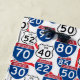 Here's a fun beach towel for anyone who loves to hit the open road. It features a random pattern of interstate highway signs and U.S. highway signs laid over a highway map.