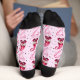 These are adorable Valentine sock featuring a pattern of cute gnomes, heart shapes, xoxo and dots on a pink background. Celebrate love by adding these fun socks to your wardrobe or giving them as a Valentine's day gift, anniversary gift or birthday gift.