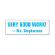 This inspiring rubber stamp design features the positive message "VERY GOOD WORK!" and a custom teacher's or educator's name. It could be used by a teacher, educator, or tutor when marking assignments, to acknowledge that the student has done well.