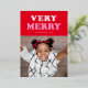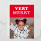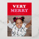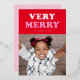 This fun holiday photo card features simple retro inspired typography in silver foil and hot pink with a red background. The greeting on the front says simply "very merry". This design accommodates a single, square photo on the front of the card. On the reverse side you will find a festive pink and white diagonal stripe pattern which can be removed or changed. The raised foil on this card really shines and adds that extra special touch to your holiday cards!