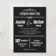 This fun black and white theatre wedding invitation features a decoration on top with the words "A Wedding Production" right below and the word "Starring." The names of the bride and groom appear in a fun typography with the first names larger than the last names. Below the names you can customise the event you are inviting your guests to. The fun typography continues on the invites in the way the details of the wedding are written. This is a great invite for anyone interested in the theatre or interested in adding some fun to their wedding invitation. Copyright henishouseofpaper