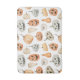 This design features a charming watercolor pattern of pumpkins and jack-o'-lanterns in a soft, muted colour palette. The design includes various pumpkin shapes and sizes, painted in gentle shades of orange, cream, and grey. Each jack-o'-lantern has a unique carved face, ranging from happy and friendly to slightly spooky, adding character and variety to the pattern. The pumpkins are arranged on a clean, white background, allowing the delicate watercolor textures to stand out. The overall design is both festive and adorable, perfect for capturing the whimsical spirit of Halloween in a cosy, artistic way.