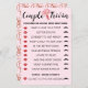 Bring laughter and friendly competition to your bridal shower, bachelorette party, or wedding reception with this Wedding Couple Trivia Game! Guests will guess whether the bride or groom fits each fun description—who said "I love you" first, who takes longer to get ready, and who’s the better cook! Featuring a fun pink and red design with playful lips and moustache icons, this game is easy to play and perfect for engagement parties, rehearsal dinners, and couples' showers. A must-have for wedding celebrations, ensuring an entertaining and memorable time for everyone!