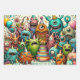 Fun Weird Creatures at a Birthday Party Wrapping Paper Sheet
