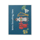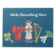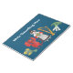 A fun Notepad or Jotter to personalise, with a row of Welsh Emblems, a girl in welsh traditional dress, a red dragon, a bunch of leeks, a harp and a bunch of daffodils; you can easily change the blue background if you wish.