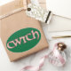 Mail a Welsh 'cwtch' to your loved ones! A sheet of oval stickers with the Welsh word 'cwtch', meaning 'cuddle' or 'hug' in a Celtic script, filled with a pretty Clematis pattern on a deep green background that you can change if you wish.