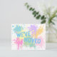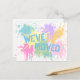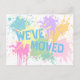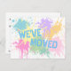 A colourful & whimsical spray paint splash "we've moved" postcard to send friends & family in pretty pastels! Customisable back text for address info