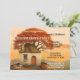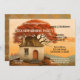 Fun housewarming party invitation featuring a modern art painting of a whimsical style home with tree.