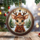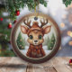 Fun Whimsical Winter Wildlife Christmas Decor. Xmas Reindeer Personalizable Rustic Wooden Frame Decoration. Deer with antlers custom Holiday tree ceramic ornament. Inside, a cute baby woodland animal in a cartoon graphic style, wearing a coat, hat with customizable text and scarf. In the background, a wintry snow wonderland scene, completes the season's charm of this unique doe. The two sided illustration ensures that no matter how the hanging design turns, it always looks festive and complete. 🦌🎄