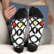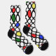 My original digital artwork is on these fun socks featuring a retro asymmetric circle pattern - wiggle shapes in black and white, with random colours filled in on some circles. These playful crazy socks are considered a sustainable product and are printed with water-based inks. Cosy and comfy and make a great gift. One size truly fits all.
