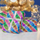 This bold geometric striped chequered design in a rainbow of jewel tone colours will add excitement to any gift. Click Personalise and then the big blue box to "Edit using the Design Tool" and have fun customising this design to suit your own style. You can change all the white pin striping in this design to any other colour. Try black for a totally different look. Experiment with the 13 different image filters to achieve vastly different colour effects.