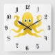Fun yellow octopi square wall clock