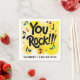 Get ready to rock with these vibrant paper napkins! Perfect for your teenager's birthday celebration, these napkins feature a lively yellow watercolor spots background adorned with colourful musical notes that bring the party to life. The bold slogan "You Rock" is showcased in striking black brush-painted typography, adding an edgy, dynamic flair to your table setting. Modern typography enhances the playful design, while the back of the napkin is a vivid yellow, amplifying the energetic vibe. Plus, the bottom text is customisable, allowing you to personalise it for a high-energy, fun-filled celebration!