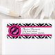 © 2010 Socialite Designs. A fun zebra print, lipstick kiss and hot pink lace label design ready for you to personalise. Use as a return address label, jar labels, bookplate label, binder tab labels, product labels, favour labels, scrapbooks, etc. Font style and background colour can changed, or replace this image with your own. Clear the text and just order the design to use in your home printer. Need HELP with customisation? Please do not hesitate to contact me.