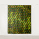 Estampado com imagens quadradas verde colocadas como se fossem tijolos em uma parede - inclinada -, onde as linhas amarelas ou douradas na volta das pequenas imagens podem parecer em alto relevo ou o fundo composto que imagem verde parece estar mais profundo que as linhas amarelo dourado que pode parecer um tipo de grade.