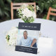 With the text: Celebration of life. Personalise and add a photo, name and dates. A dark blue background, white text.