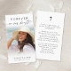 Keep the memory of a loved one close with this custom personalized prayer card featuring one treasured photo, the sentiment FOREVER IN OUR HEARTS, name and dates on the front and an editable prayer accented with a simple cross on the back. With its simple yet elegant black and white design and modern handwritten typography, it makes a meaningful keepsake to share at a funeral, memorial service or Celebration of Life and offers comfort and a lasting tribute for family and friends. Its small and portable size of 3.5x2" (wallet-sized) makes it convenient for loved ones to carry it with them as a reminder of your loved one’s life and spirit. Personalization makes each card unique.