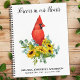 Modern Cardinal Bird and Sunflowers Memorial Funeral Guest Book. This funeral guest book features a red cardinal in a bouquet of sunflowers and eucalyptus greenery, name and dates, on a modern white design. This funeral guest book is perfect keepsake for memorial service, celebration of life and funeral . COPYRIGHT © 2020 Judy Burrows, Black Dog Art - All Rights Reserved. Funeral Guestbook Note Memorial Cardinal Sunflower Notebook