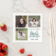 Memorial Funeral Napkins ~ Modern white marble 3 photo collage, for funeral service and celebration of life events.  In Loving Memory, with Eleant monogram initial and name.
