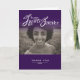 Thank guest for attending your memorial service with this simple in our hearts forever typographic heart on dark purple violet add your own photo memorial funeral thank cards. Personalise with your own photo and inside wording. A simple black and white modern design. Original graphic design by Sarah Trett for www.mylittleeden.com (Photo credit by Guilherme Stecanella on Unsplash model photo is just a placeholder image for you to replace).