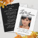 Simple keepsake tribute prayer or poem card which gives families the ability to have a tribute keepsake remembrance with one photo of their loved one. This modern simple white and black memorable tribute pray or message cards can be personalised with a special photo, and the poem of your choice on the reverse currently has the poem She is gone by David Harkins. Other matching items are available. Designed by Sarah Trett for www.mylittleeden.com