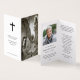 Our Folding Prayer Card—a tenderly crafted tribute designed to honour the cherished memory of your loved one. Adorned with an elegant image of Jesus, Mary, or a beloved saint on the front, this card serves as a comforting beacon of faith during moments of mourning.
