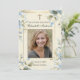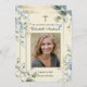 Featuring a beautiful Catholic funeral memorial photo prayer card with blue floral design and the Blessed Mother Mary holding the Baby Jesus. All text and fonts can be modified.
