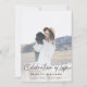 Modern, minimalist photo funeral invitation to celebrate the life of your loved one in a minimalist clean simple design style featuring an informal casual handwritten script font and a soft dove grey background. The design can easily be personalised with your own photo and text to create a special tribute for your loved one's funeral, memorial or celebration of life. The image shown is for illustration purposes only to be replaced with your own photo. The placeholder image shows a young woman with wavy blonde hair wearing a hat and white sweater dress sitting on a gold vintage jeep in the mountains cuddling an adorable black dog. #funeral #invitation