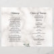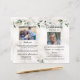 EASY TO ADD PHOTOS. Order of Service Memorial Funeral Photo Program. It features watercolor greenery, faux gold splashes, one photo on the front and a family photo on the back, on a white marble background. Use Personalise tool to add your info and add in a easy way your photos. For matching items, please, visit my Celebration of Life Sympathy Thank You Collection.