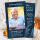 Premium Blue Marble Sympathy Funeral Prayer Cards. This simple memorial prayer card features an elegant blue lapis stone design . Front "In Loving Memory" Personalise this memorial funeral prayer card with your loved ones photo, name & dates, and sentiment. Back ~ 'Miss Me' Poem, which can be personalised, please reach out if you would like a design with a specific poem other than. This laminated memorial prayer card will be a treasured keepsake, for funeral services, and celebration of life. COPYRIGHT © 2020 Judy Burrows, Black Dog Art - All Rights Reserved. Funeral Memorial Blue Marble Photo Prayer Card