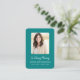 This simple funeral memorial card can be given as a keepsake at a Celebration of Life or funeral service or sent as a special tribute to those who were unable to attend. Personalise this card with a favourite photo of your dearly departed, details and your choice of prayer or poem on the back of the card. Design features elegant script font on a stylish teal background that can be changed to any colour of your choice. Easy to customise photo, text and background colour of card.