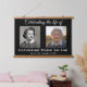 Create a bold memorial for display at any wake, funeral, celebration of life, or other memorial event. It offers space for a younger image as well as a more current image so the deceased can be seen in various walks of life. You can personalize all aspects of the design to suit your occasion.