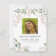 Funeral order of service/thank you note featuring a classic white background, a beautiful floral and foliage watercolor decoration, a modern square photo of your lost loved one, memorial order of service, and a thank you template that is easy to personalise.