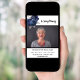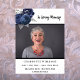 With the text: In Loving Memory. Personalise and add a photo, name and dates. White background, black text. Decorated with blue florals. A black photo frame.