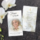 Funeral Photo God's Garden Cross God's Garden Poem Prayer Card. Keep the memory of a loved one close with this custom personalised prayer card featuring one treasured photo, the title FOREVER IN OUR HEARTS accented with two gold hearts, name and dates on the front and an editable prayer or your remembrance message accented with a gold cross with a muted background of white flowers or replace with your own photo or image. The sample shows the poem "God's Garden." With its simple yet elegant classic black and white design accented with gold and calligraphy script typography, it makes a meaningful keepsake to share at a funeral, memorial service or Celebration of Life and offers comfort and a lasting tribute for family and friends. Its small and portable size of 3.5x2" (wallet-sized) makes it convenient for loved ones to carry it with them as a reminder of your loved one’s life and spirit.