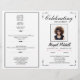 Celebrating The Journey Folded Program in black and white, with elegant fonts. This funeral program is a special way to remember your loved one. Easily edit all of the wording to accommodate the services and memories you would like to share. Add a photo of your loved one along with their name and years living. On the back you can write the obituary and program. There is plenty of room to describe your memorial service. Please message me, if you need help finding a matching items. Fold it yourself for a elegant and practical funeral program!