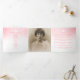 In loving memory funeral program order of service soft pink white rose and white dove in six-page tri-fold with four photos funeral program. An elegant program where you can simply replace the sample text and photos with your own photos and memorial service details, including an obituary, order of service, a reflection or poem, and acknowledgements. Design and rose photography by Sarah Trett for www.mylittleeden.com (Photos are placeholder images for you to replace with your own).