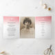 Funeral program order of service red rosebud and white dove in loving memory 6-page tri-fold with three photos funeral program. An elegant program where you can simply replace the sample text and photos with your own photos and memorial service details. Other matching items and colour options are available to reflect your loved ones' favourite colour rose. Design and rose photography by Sarah Trett for www.mylittleeden.com (Photos are placeholder images only for you to replace with your own loved ones).