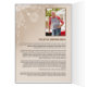 Very nicely done exactly what it looks like doesn't need a frame to stand it up and right size without overbearing the items on the table. Exactly like the picture turn out very clear and sharp