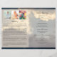 This funeral program prints double-sided on a single sheet of Letter Size paper (8.5 x 11 inches). When folded, this creates a booklet with 4 x half Letter size pages (8.5 x 5.5 inches per page).