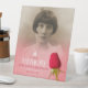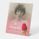 Funeral service or family gathering in remembrance pedestal photo featuring a single red rosebud and a white dove on a tinted red pink background and your own photo of your loved one. Personalise with your own choice of photo and birth/death dates. Other matching items are available. Original photography and design by www.mylittleeden.com