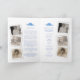 Funeral program order of service double-sided floral forget-me-not flowers inked art funeral program in blue, white, with touches of yellow and green on white and dark blue. Simply replace the sample text and instant photo holders with your own special photos and information details. Original inked drawing and watercolor artwork and design by Sarah Trett for www.mylittleeden.com (photos are just placeholder images for you to replace with your own photos).
