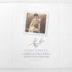 Funeral order of service tri-folded six page wildflower and butterflies watercolor art program. Embellished with purple butterflies, yellow velch and pale blue purple harebells on a white background. Simply replace the sample text and add your own full size photos on two pages and use the smaller instant style white framed photo holders with further of your own special photos. Original botanical and butterfly hand watercolor and design by Sarah Trett for www.mylittleeden.com (photos are just placeholder images for you to replace with your own).