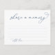 This is the modern romantic script, Funeral Service, Share a memory or word to the family, sympathy, memorial service card, in classy navy blue themed.