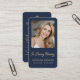 This simple modern memorial prayer card template with elegant gold script on a classic blue background can be given as a keepsake at a Celebration of Life or funeral service or sent as a special tribute to those who were unable to attend. Personalize this card with a favorite photo and your choice of prayer or poem on back of the card. Easy to customize.
