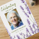 Funeral photo welcome sign featuring purple lavender flowers, a photo of your loved one, their name and dates.