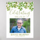 Funeral photo welcome sign featuring watercolor green foliage, a photo of your loved one, their name and dates.