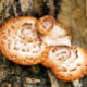 A photographic design of fungi growing on a tree.
